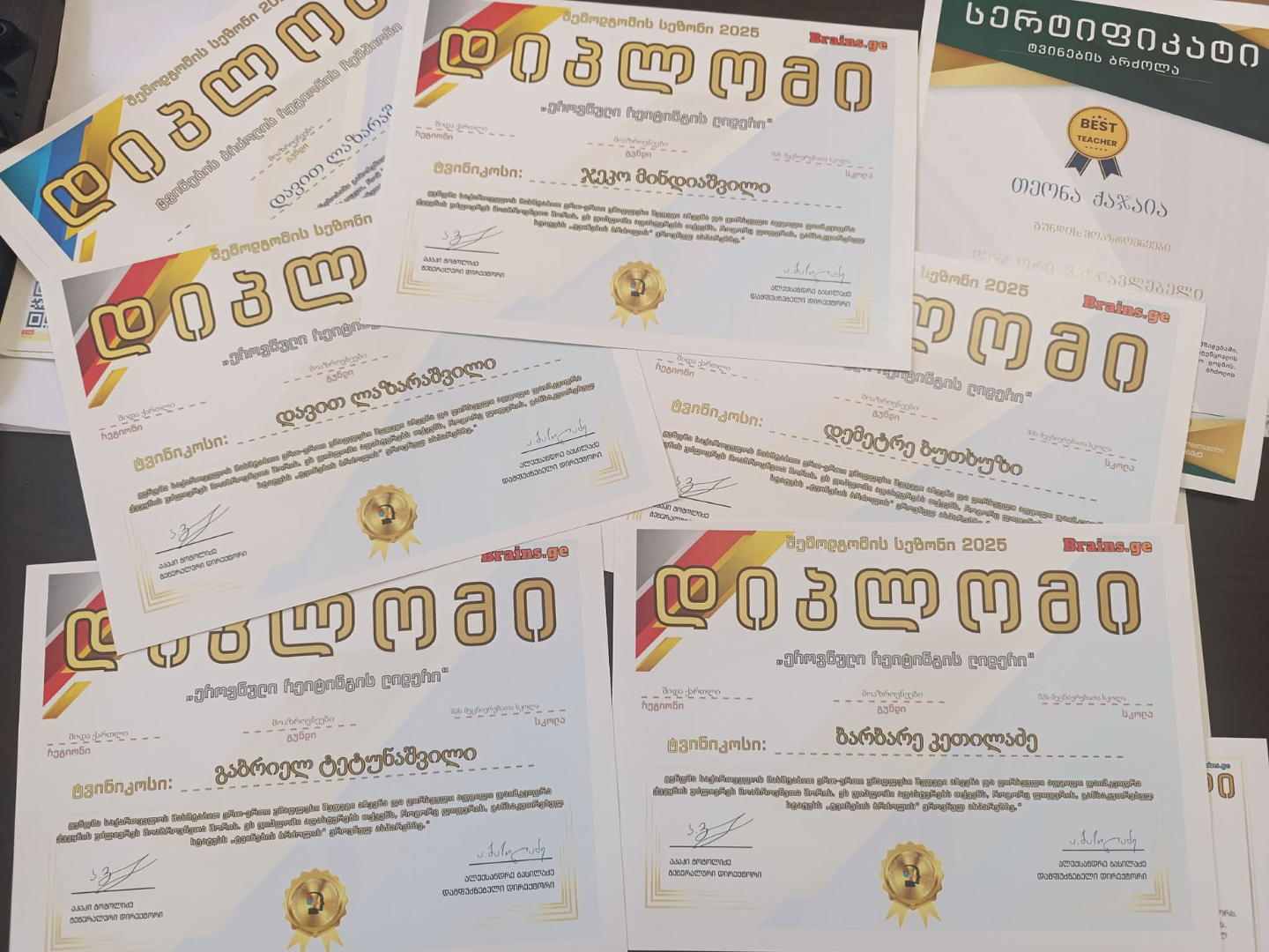 “მეცნიერებათა სკოლის” მოსწავლეებსა და მათ პედაგოგს ინტელექტუალურ ჩემპიონატში, “ტვინების ბრძოლა”, მოპოვებული წარმატებისთვის დიპლომები გადაეცათ. მათ 2025 წლის შემოდგომის სეზონზე შიდა ქართლის რეგიონის მასშტაბით საუკეთესო შედეგები აჩვენეს.