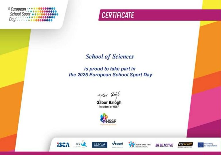 ევროპის სასკოლო სპორტულ კვირეულში მონაწილეობისათვის, მეცნიერებათა სკოლას გადაეცა სერთიფიკატი.